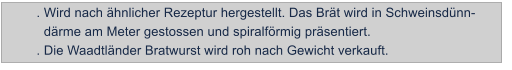 . Die Waadtländer Bratwurst wird roh nach Gewicht verkauft.