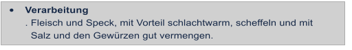 . Fleisch und Speck, mit Vorteil schlachtwarm, scheffeln und mit