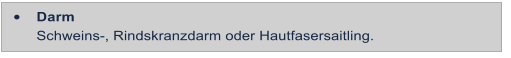 Schweins-, Rindskranzdarm oder Hautfasersaitling.