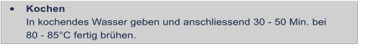 In kochendes Wasser geben und anschliessend 30 - 50 Min. bei