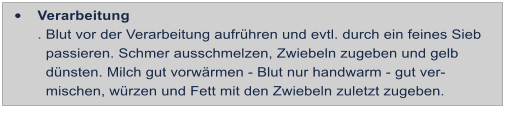 . Blut vor der Verarbeitung aufrühren und evtl. durch ein feines Sieb