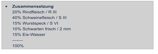 Rindfleisch und Speck unter Beigabe von Eis-Wasser zu einem