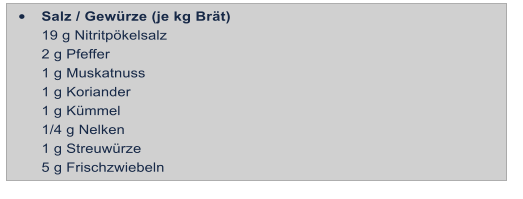 Salz / Gewürze (je kg Brät)