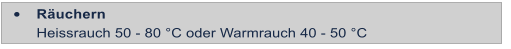 Heissrauch 50 - 80 °C oder Warmrauch 40 - 50 °C