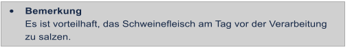 Es ist vorteilhaft, das Schweinefleisch am Tag vor der Verarbeitung