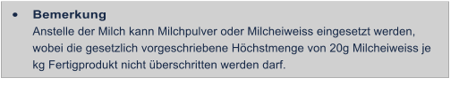 wobei die gesetzlich vorgeschriebene Höchstmenge von 20g Milcheiweiss je