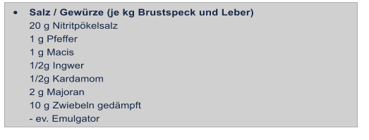 Salz / Gewürze (je kg Brustspeck und Leber)