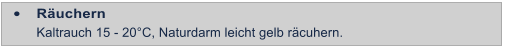Kaltrauch 15 - 20°C, Naturdarm leicht gelb räcuhern.