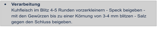 Kuhfleisch im Blitz 4-5 Runden vorzerkleinern - Speck beigeben -
