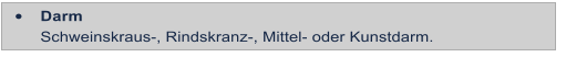 Schweinskraus-, Rindskranz-, Mittel- oder Kunstdarm.